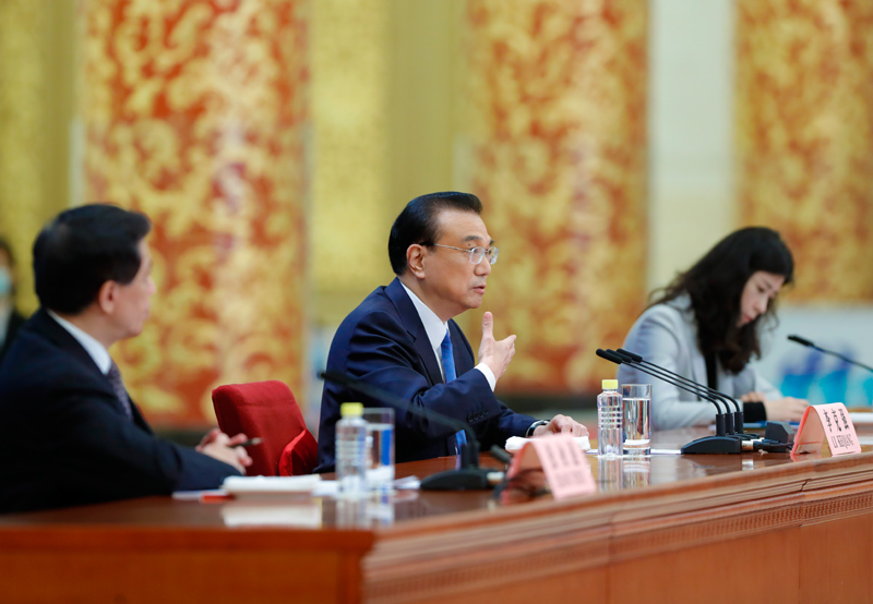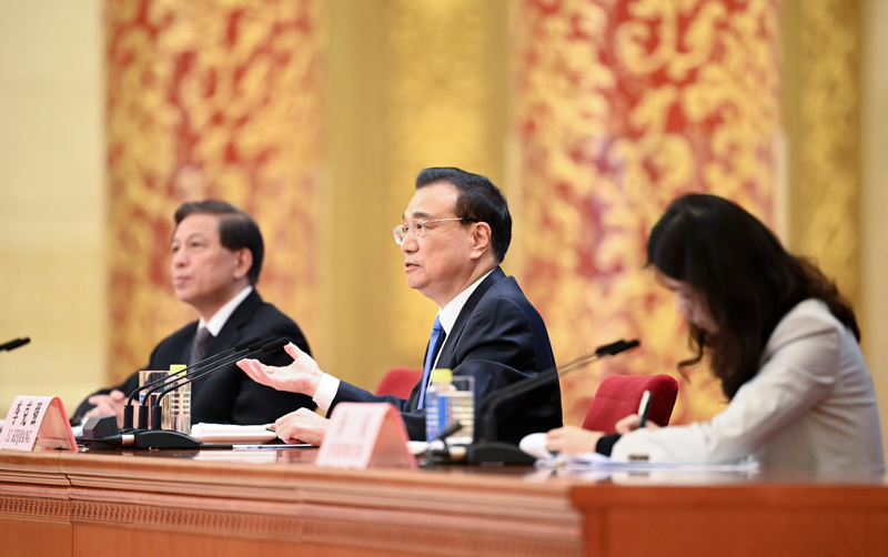 3月11日下午,十三届全国人大四次会议在北京人民大会堂举行记者会,国务院总理李克强应大会发言人张业遂的邀请出席记者会,并回答中外记者提问。新华社记者 黄敬文 摄