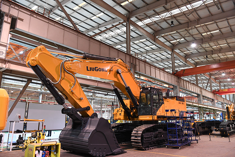 这是4月26日拍摄的广西柳工集团有限公司生产厂房内正在组装的机械。新华社记者 曹祎铭 摄