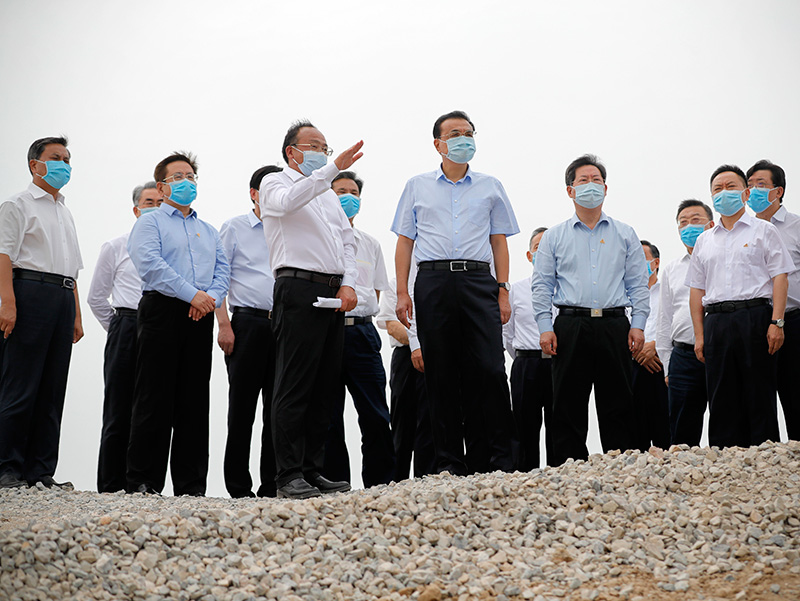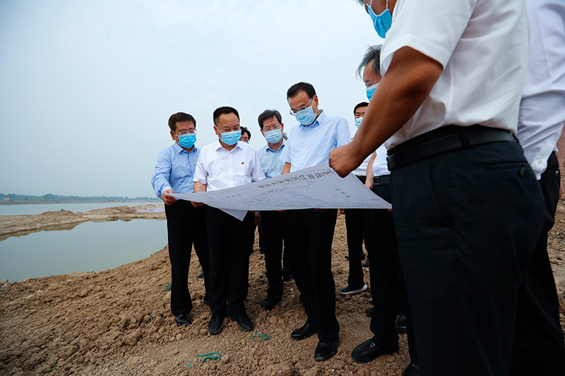 李克强来到河南省卫辉市,考察卫河决口堤段修复进展情况
