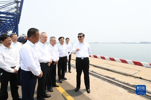 4月10日至13日,中共中央总书记、国家主席、中央军委主席习近平在海南考察。这是12日上午,习近平在洋浦经济开发区考察。新华社记者 李学仁 摄